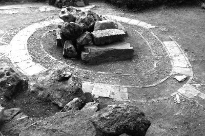延清堂大殿遺址東北角發現的假山及周圍環繞的道路