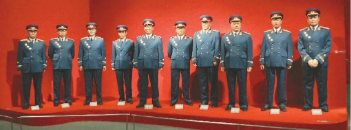 除了文物,展覽還展出了“十大元帥”的蠟像。朱德、彭德懷、林彪、劉伯承、賀龍、陳毅等“十大元帥”蠟像吸引了眾多觀眾的目光。這十尊蠟像身高比例與真人一樣,形態傳神逼真,觀眾不時發出“真像! ”“這些蠟像看上去比真人年輕”的感嘆