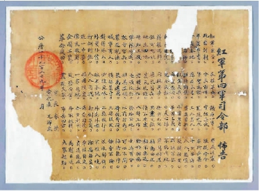 [人民軍隊] 1929年1月,紅軍第四軍軍長朱德、黨代表毛澤東聯名發布布告,指出紅軍的宗旨是“民權革命” ,即為人民的權利而斗爭(圖一) 。1933年8月1日,中央革命軍事委員會向領導南昌起義的負責同志及紅軍中有特殊功勛的指戰員授予紅星獎章 …… “人民軍隊”部分主要展示了由中國共產黨締造的這支人民軍隊,如何以星火燎原之勢,終成百萬雄師的成長歷程。