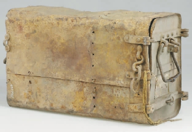[人民戰爭]中國人民解放軍素以能征善戰著稱于世,在為建立新中國而奮斗的革命戰爭年代,開國元勛們運籌帷幄,領導和指揮中國人民解放軍經過英勇斗爭,最終贏得了民族獨立和人民解放事業的偉大勝利。這部分展示內容中既有毛澤東、朱德、賀龍等人在戰爭年代使用的隨身武器;也有顯示軍隊統帥運籌帷幄,靈活機動地指揮完成戰略、戰術任務而使用的軍事地圖;還有戰斗勝利后印發的一份份捷報、收繳的一件件戰利品,如1941年11月,八路軍在黃崖洞保衛戰中繳獲日軍的炮彈箱(圖三)。