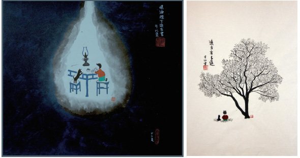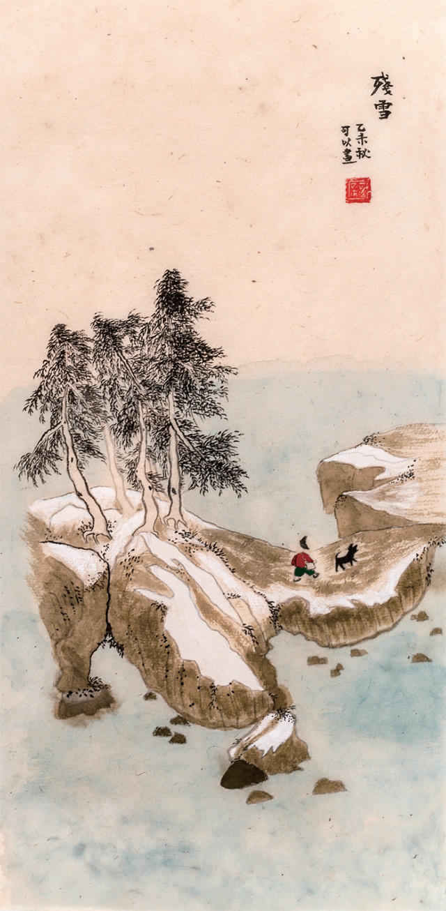 2013年的某天飯后,試用余墨涂鴉,突然上了癮,畫了上百幅小畫,繪出記憶中紅衣綠褲的孤獨童年與美麗故鄉,到小畫成書,翻閱時依舊憂傷,且溫情蕩漾。知曉自己無繪畫基礎,那么多人歡喜小畫的稚拙天真,心里很慚愧,打算接下來花工夫臨摹清末畫譜《芥子園畫譜》或名人水墨,掌握畫山水樹木花鳥蟲魚的基本技巧,以便新作經得起細致觀賞。有人說沒必要那么做,保持天然野生,無根無派的很好。這使我想起另一種觀點,意思是大學教育沒用,千萬不要去上大學。這觀點我不太贊同,社會里壞且復雜,那就不要到社會去了。我們身在某處,不是單純地、被動地接受教育,更潛在的是,在過程中發現自我、形成自我、證實自我,一個人的成形,取決于自己的底色,你是自己的主干。一棵冬天里落滿雪的樹,根莖仍然在土地里生長,汁液依舊流淌,若不是毀滅性的破壞,它總是按自己的樣子成長。當然只是打個比方。在漫長的被教育過程中,始終有一個自我的核仁,這顆核仁要么自我分解、要么被敲碎,要么長得堅不可摧。硬核,也就是人格與思考的獨立部分,敏銳,智慧,這一部分將是卡住小齒輪的石子。