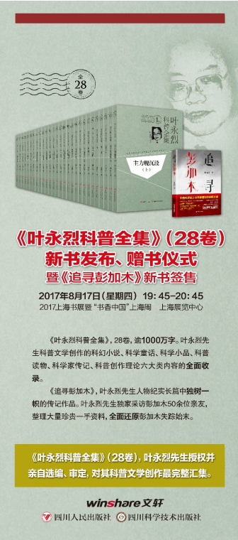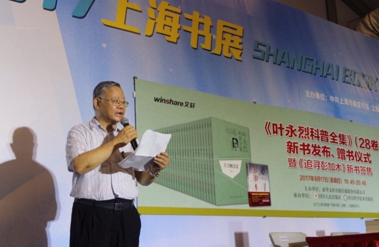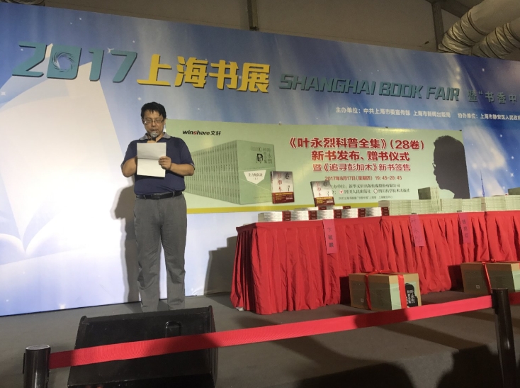 2017年上海書展《葉永烈科普全集》(28卷)新書發布、贈書儀式暨《追尋彭加木》新書簽售活動今天在這里隆重舉行,我謹代表上海市科普作家協會對這個活動的成功舉辦表達祝賀,并向葉永烈先生表達由衷的敬意。