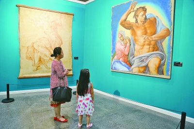 8月20日,正在鳥巢文化中心展覽的“米開朗基羅國際藝術展”展廳里,人們在靜靜觀賞。被譽為“文藝復興三杰”之一的大師有著不言自明的號召力,吸引來不少觀眾,有三五成群的年輕人、結伴而來的情侶,也有帶著孩子的父母。
