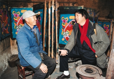 馮驥才(右)在普查中發現了天津楊柳青鎮南宮莊子唯一活態的“粗活”年畫藝人王學勤(左)。