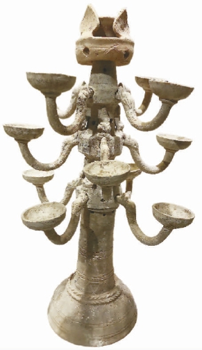 十六國時期陶質星象紋底座帶佛像十三龍頭枝燈