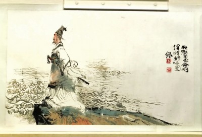 程十發先生做人膽小,攻藝膽壯,畫畫構思快、下筆快,落筆生春,常常有出人意表的獨造。他的畫特多那個時期的畫家很少有的隨心馳意,靈氣迸發,富于浪漫氣息?!拔母铩敝?,我曾請發老畫過一張“世人皆醉我獨醒”的 《屈原》 (見題圖)。國畫不同于電視等動態表演,要以一個靜態的畫面表現時代背景、人物情緒、心理演繹,具有很大的挑戰性。而他構思的屈原面朝向左,左邊留白逼近宣紙邊緣,有碰壁感。畫上屈原立于一片崖石盡頭,身后鋪排的是渺??臻g,下方則是倒流的汨羅江水,巧妙地營造出屈原走投無路,準備用自己的生命來證明自身的清白和對國家的忠貞。其實,發老處理屈原的站位,就已將其報國無門的苦楚、悲涼、憤慨、絕望、殉國的心境表達得一覽無遺,深刻呵深刻。我想這某種意義上何嘗不是發老的自況,唯一不同的是,他是始終相信光明在前的程十發。