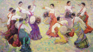 朝鮮功勛藝術家金德新的作品《長鼓舞》。 資料圖片
