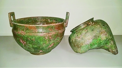 出土后正在修復中的銅甗 山西省考古研究所侯馬工作站供圖
