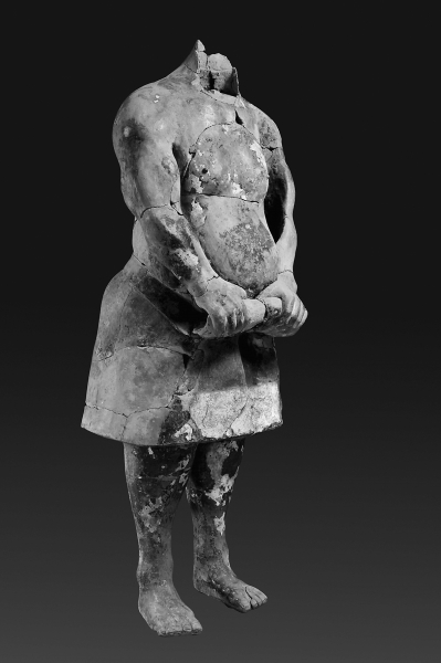 1999年,秦陵又有新驚喜——陵園東南角的百戲俑坑揭開了神秘面紗的一角。首次搶救性試掘,試掘面積僅72平方米,出土了目前在秦陵地區發現的體積、重量最大的一件青銅鼎以及11件陶俑。這些陶俑姿態各異,風格、服飾、裝束等都與兵馬俑截然不同,多數上身赤裸、肌肉發達,有的像持竿人,有的像角力者。經過考證和研究,初步認為他們可能是象征著秦代宮廷娛樂活動的百戲俑。