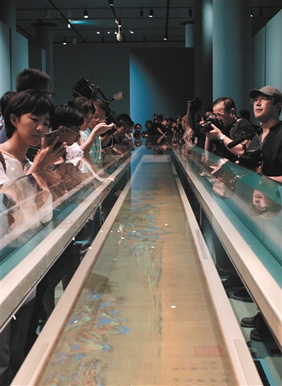 兩年前,《清明上河圖》在故宮展出時引發的觀展長隊還歷歷在目,今天,比《清明上河圖》長1倍的《千里江山圖》全卷展出,與觀眾見面。想必這幅北宋鴻篇巨制長卷會再次引爆新的書畫參觀熱潮。