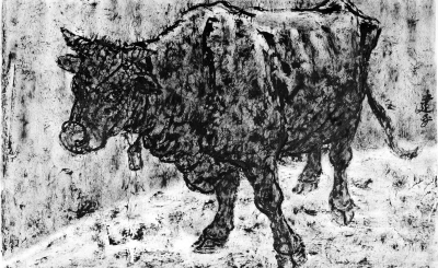 2000年,仍然是在陜北黃河邊的一個村莊,正在寫生的他手邊沒水了,一時興起,便用焦墨畫了一幅人物。