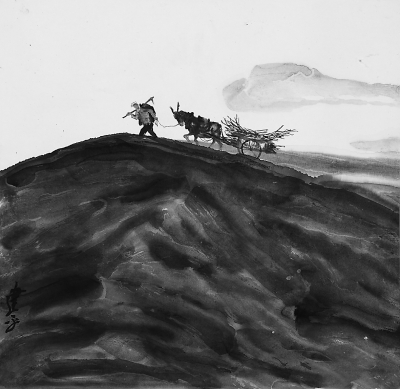 所謂焦墨,就是不摻水的水墨,不摻水,自然就沒那么流暢唯美,反給人樸素滄桑之感。梁建平原是隨手而畫,不料,旁邊圍觀的老漢卻連連點頭:“這才像我們受苦人!”梁建平不禁為之一動:焦墨的枯澀,不正好與黃河邊歷經磨難的老百姓相契合嗎?