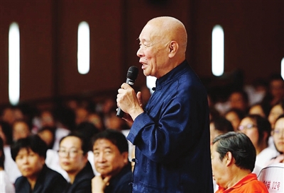 在“馬季杯”全國大學生相聲展演的頒獎晚會上,王謙祥、李增瑞這對合作了57年“黃金組合”,再度表演了他們的經典作品《笑的探討》。