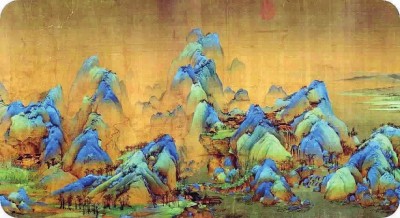 王希孟《千里江山圖》局部,“千里江山———歷代青綠山水畫特展”展品
