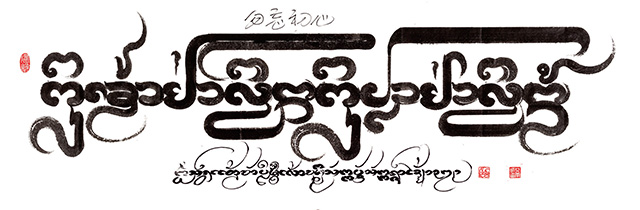 阿寧·扎西東主(藏族)藏文書法,意為:說實話,做實事。