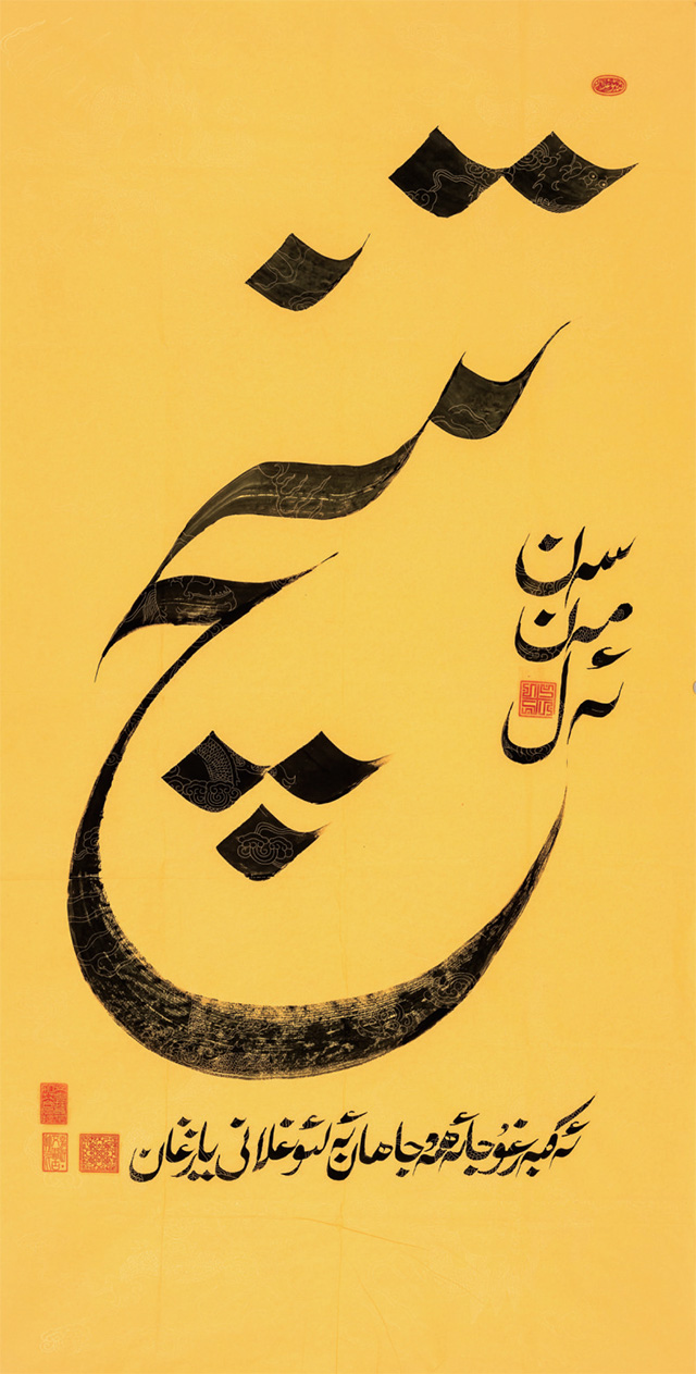艾克拜爾·霍加艾合買提·賈汗(維吾爾族)作品,意為:人和,則天下太平。