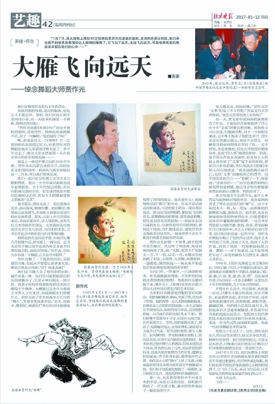 10月6日,俄語翻譯界的泰斗,《保爾·柯察金》、《安魂曲》的譯者,91歲的著名作家、畫家高莽先生逝世。今年1月12日,高莽先生還為本報留下絕筆——緬懷著名舞蹈家賈作光先生的整版悼文《大雁飛向遠方》,為讀者留下向真、向善、向美的精神力量。因為夫婦都屬虎,高莽戲稱自己的家是“老虎洞”。去年4月,本版編輯隨著名作家、畫家魯光先生走進“老虎洞”。高莽老為好友魯光畫像,魯光為高莽賦詩,談笑風生、智慧風趣。這難忘的相聚,被魯光先生寫進《高莽 老虎九十不出洞》,刊發于去年6月30日的《北京晚報》。不料,這一面,也成為他們的永別。10月7日,噩耗傳來,魯光先生熬通宵寫成此文,為老友高莽送行。