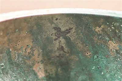 在此次展出的青銅器中,有一部分是僅銘有族氏銘文的,即家族的名號,以表示是該物品的所屬人。代表族徽的銘文,象形的程度會比較高,主要用作禮器。比如展出的鳥父甲鼎,內里的銘文就是自上而下三個字,其中“鳥”字則幾乎完全是鳥的象形,這個鳥就是鳥族的族徽,鳥族族群在當時十分龐大。而后面兩個字就是“日名”,日名是指古人對逝人的稱謂,一般以甲乙丙丁戊己庚辛壬癸十天干前加上受祭者的輩分格式出現。這種禮器又叫做日名器,既點明了受祭者,又表明了作器者和受祭者的關系。