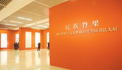“民族脊梁——迎慶黨的十九大勝利召開全國書法大展”展廳一角