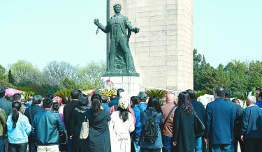 烈士親屬手持鮮花在南京市雨花臺烈士紀念碑前憑吊先烈。新華社記者 孫參攝