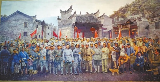 湘南的汝城縣城,是中國革命史的特定坐標:1927年11月,朱德與湘南、粵北地方黨組織負責人在汝城縣衡永會館召開為期三天的聯席會議。此次會議在思想上、組織上、軍事上為1928年元月發動的湘南起義作了必要的準備。1928年1月11日,朱德、陳毅率領部隊打響了湘南起義第一槍。李春祥,作為一個勇于擔當有使命感的畫家,以畫筆為時代立傳,在史實基礎上,以視覺圖像的方式,為紅色革命發祥地展開宏大敘事,不但給人以藝術的熏陶,而且能從中學習中國革命史,傳承紅色文化。這是我反復閱讀他創作的《湘南起義·汝城會議》等系列水彩畫作品的所想。