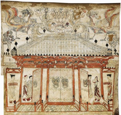 壁畫墓中最引人注目的畫跡,是一座規模宏大的木結構建筑。在此之前,我國有詳細圖像記載的建筑最早只能追溯到唐代,這幅壁畫詳盡地展示了北朝建筑樣式,可以說是突破性的發現。
