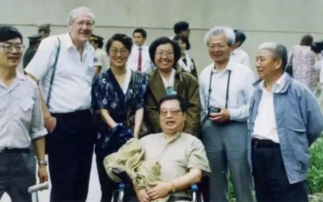 ▲1991年,WSF成都年會臥龍考察合影。前排坐輪椅者為鄭文光,后排左起依次為:章邦鼎、布萊恩·奧爾迪斯、楊瀟、莫樹清、郭建中、劉國宣。(圖片來源:楊瀟)