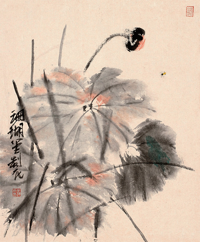 前不久,看一本《古今指畫集》,便忽然想起用手指試它一試,且給毛筆放幾天小假,小時候師傅經常畫指畫,畫之前,必先換黑衣黑褲,這便是講究,然后才慢慢畫起,或是用小指指甲輕輕著一點墨在紙上一點一點輕輕拉,或是用食指和中指并在一起在紙上用力搓擦,或是單用中指蘸一點墨在紙上輕輕點,食指的指甲最長,著紙有力像是公孫大娘劍器行,在紙上一劈一劈。若四指并攏了一齊上陣,大塊的石頭便在紙上即刻崢嶸起來。想想師傅當年畫指畫那雙手真是黑煞難看,指甲縫幾天都洗不干凈,都不忍看他伸手取饅頭。再看看畫冊中潘大師指畫的松石,看看歷代畫家指畫的凌厲用筆,便忍不住研了墨,手巾水盆都準備好,老婆廚房用的圍裙此刻忽然升級,居然直接與文化接軌。鋪好紙,是從右手先黑起,繼之左手,為了畫這指畫還特意留了指甲,但也不是專門為了畫這幾張破宣紙,平時沒事撫弄古琴,右手指甲自然在,再留則是小指,小指指甲畫蟲須,真是要緊的很,其他指甲還很難派用場,而小指指甲留短了還不行,此指便一如筆中的“衣紋”“勾線”。而大拇指卻是中號狼毫。畫指畫,特有一法是以線纏指,粗線細線各有講究,纏一指纏兩指須事先想好,把手指直勒出一道一道楞,還要學會用手抓墨,水盂里一下,硯池里一下,要快而利落,用手指一抓一抓,即刻灑落紙上,淡墨一下濃墨一下,紙上便淋漓起來。潘天壽最喜畫指畫,想必其指甲亦是特別的長,看他指畫之松針,厲厲一如刀劍,今年6月荷花開,專門跑去杭州看了一回荷,心里便想著潘大師的指墨荷花。潘大師的指墨好,好在尺幅大而畫面凈爽,沒一滴墨跡灑落,無論山石蘭草松針鷲鳥,線條遒勁利落得讓人想不到,想必潘大師是一邊畫一邊用什么兜著那只手,不然怎么四尺整張的大畫會那么干凈?畫指墨真是很難做到這一點。所以其《淡彩指墨畫鷲圖》令人心服。再看南宋梁楷,總覺他的畫兒也一律都是手活兒,有指墨的味道。用手指在紙上作畫當然叫做“指畫”。指畫始自唐代張璪,想必此人的手指整日也都是墨跡淋漓,指甲縫里更不必說,且穿不得素衣白袍。畫指畫,雖指縫墨跡一連幾天都洗不干凈,但我還是喜歡那種感覺——就像是身上忽然長出10支筆,居然是軟中硬都有,且分大中小號。以指代筆,有特殊美感,但畫指畫,一張畫實實在在很難只靠手指來完成,即如潘大師,也不免要靠毛筆來收拾一下,或是以線纏指增強其表現力。畫指畫其實味在趣味,不在尺幅大小,最上乘的指畫當純以手指在紙上來去。而以指濡墨,表現力畢竟不如毛筆。時下無論幾流畫家作畫都喜歡畫大畫,動則八尺或丈八,且以能入時人眼為最高目的。有一句話是:“好書畫不入時人眼,入時人眼必無好書畫?!敝府嬕蝗缣圃娭獾脑~,古人把詞叫做“詩之余”,詩言志而詞言情,而指畫可以說是“畫之余”,重在一個“趣”字。趣乃國畫之真魄所在,不如此不可觀。
