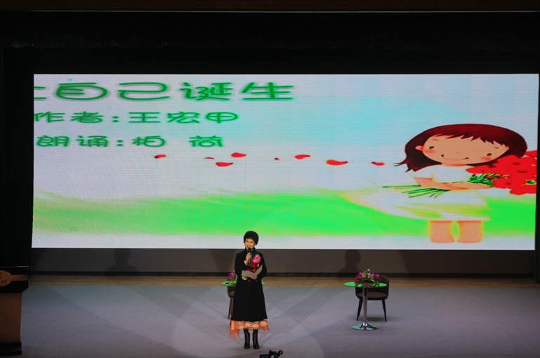 講座現場,柏荷朗誦王宏甲《讓自己誕生》序言節選