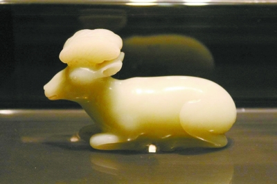 玉器中有一件青白玉夔鳳紋子剛款樽,以新疆和田青白玉所制,杯蓋雕了虎、獅子和辟邪,杯底有三只獸面足,杯扳有象鼻裝飾,扳下刻有“子剛”二字。雖然清代刻有“子剛”款的玉器很多,但真正由玉雕大師陸子剛所制的玉器不多,故此玉樽的價值十分高。玉器中還有一件宋代的青玉臥鹿,同樣以和田玉雕成,鹿成跪臥狀,姿態優雅,十分的小巧可愛。