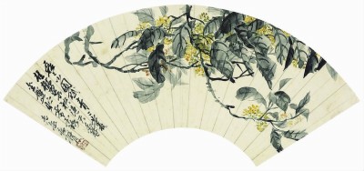 除了篆刻,吳昌碩擅寫意花卉,以其酣暢淋漓的“大寫意”形式影響了海上畫派?!秴遣T全集》主編鄒濤說,從傳世的繪畫作品觀察,吳昌碩最擅藤條類,如紫藤、葫蘆、葡萄等,枯藤若篆隸,盤旋飛動猶如行草,畫似書,書入畫;他也擅長牡丹仙桃等吉祥富貴題材,大量使用洋紅、胭脂、赭石、花青等色,厚積色塊,配以厚重的枝干頑石,濃麗繁華。