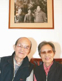 徐肖冰與侯波在跟毛主席合影的照片下留念。本報記者 劉新武攝/光明圖片