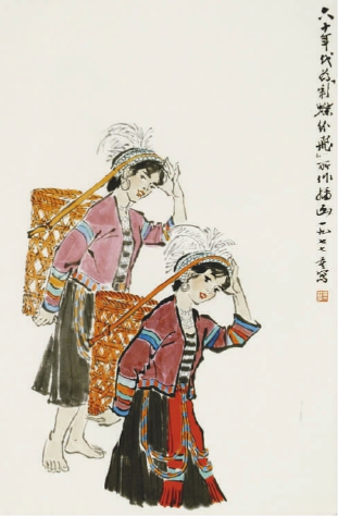 “我從漫畫轉到中國畫,夙愿已久,抗日戰爭推動了我,苗族地區之行是個機會。 ” 20世紀40年代,葉淺予從漫畫轉向中國畫。1942年,葉淺予深入到貴州黔西苗族地區寫生,開始嘗試用中國畫的筆墨在貴州皮紙上進行創作,畫了第一批苗族人物。這次寫生和嘗試讓葉淺予領略了苗鄉風采,但也感覺到漫畫表現手法的局限,“幾次嘗試,逐漸明白漫畫手法已不適用,新的表現方法必須另辟蹊徑,這就是我向中國人物畫傳統畫法追求的開始” ,葉淺予說。