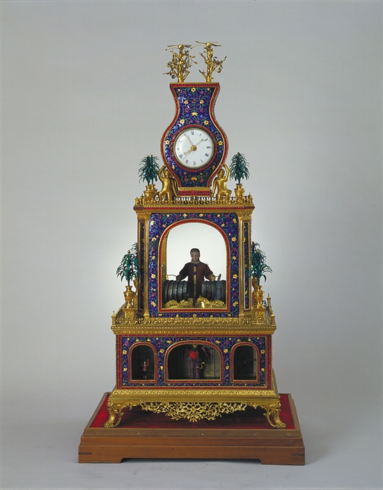銅鍍金琺瑯羽人獻壽鐘 (故宮博物院藏)