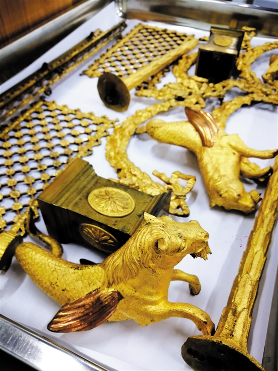 利用機械原理,令鐘表上的人偶、動植物、水法景觀活動起來,是廣鐘吸引人之處?!皬V鐘玩偶表演多,機械結構比較復雜,經我們修好的,基本都能恢復表演功能?!?/p>
