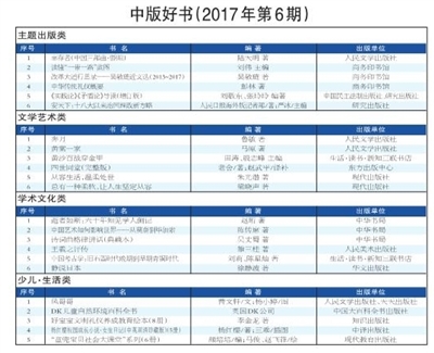 2017年第6期中版好書榜推薦 把握時代脈搏 再次激動潮流