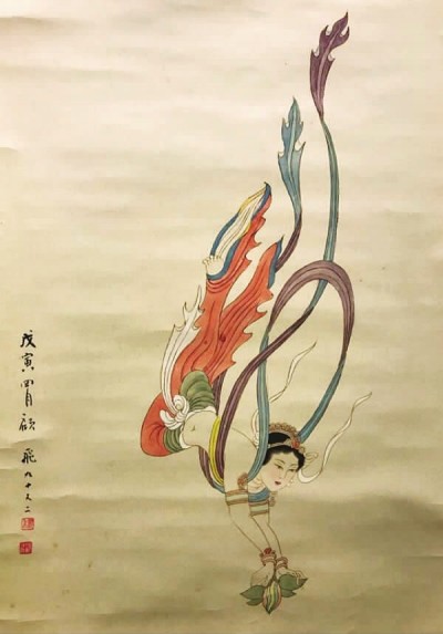 顧飛92歲所繪的人物畫《飛天》