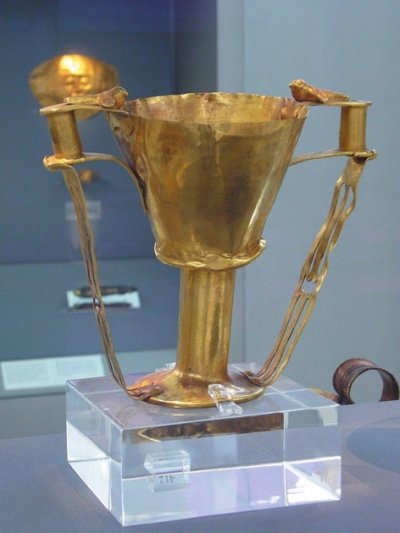 出土于邁錫尼的黃金酒杯,現藏于希臘雅典國家考古博物館