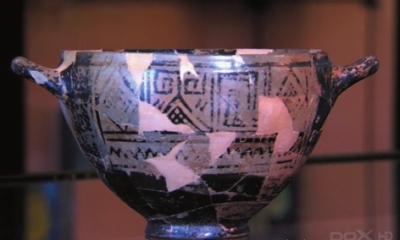 出土于皮斯庫賽的陶制雙耳酒杯,現藏于意大利阿爾布斯托莊園(VillaArbusto)博物館