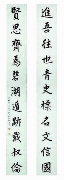 1996年,我在北京張中行先生府上聊天。記得當時我拿著一張進賢地圖,和張先生講家鄉故事,談到我們進賢這一支文氏,元初徙自廬陵 (今江西吉安),與文天祥同宗共祖;也談到唐代詩人戴叔倫在我家楊坊湖南端隱居等。我請張先生為我撰一聯,要嵌“進賢”與文天祥、戴叔倫的姓名、事跡。張先生沉吟醞釀,不出半小時,就按我冒昧之請,寫出了一副對聯:“進吾往也,青史標名文信國;賢思齊焉,碧湖遁跡戴叔倫?!蔽乙娭笙?。當場領教了張先生的文采后,我不禁想起比張先生小兩歲的中央美院教授、書畫家梁樹年先生在一篇文章中說過的話:“張中行先生的對聯,無人可比?!惫幻惶搨靼?。