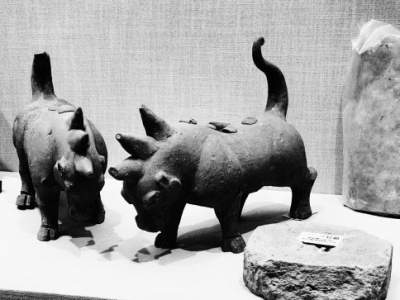 數不勝數的珍貴文物,整整占據了鄭州博物館的兩層展廳,如果不是三樓石刻展廳的展品太重,恐怕也要給這次展覽“讓路”。展覽按照中線工程由南而北的流向,大致分為南陽、平頂山、許昌、鄭州、焦作、新鄉、鶴壁、安陽等區域,每個地域的重要遺址都有介紹和代表性文物的展示。其中,既有刷新歷史、具有極高學術價值的銘文禮器,戰爭使用的各種鋒利武器,也有各個時期古人的日常生活、生產用具、金飾等,還有萌態百出的動物俑等陶器,特別是各種狗俑、貓頭鷹俑等。