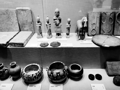 比如劉莊遺址,展覽中的彩陶缽、石鉞和各種炊具看著雖不起眼,距今都有三四千年,它們的主人被認為是商族的祖先——沒錯,我們都知道鄭州叫商城,但是使用甲骨文字的商朝人從何而來,這個疑問或許要靠這些文物去解決。再比如新鄭胡莊墓地,很多人都不知道它,但這個墓地是赫赫有名的戰國七雄之一韓國的王陵區,精美的獸面紋銅紐鐘、銀輔首銜環、錯金銀嵌金玉銅帶鉤等,讓2000多年前韓王夫婦奢華的“地下生活”再度呈現在我們面前。還有固岸墓地,你不僅會為數量巨大的隨葬俑所吸引,還一定會被展廳里的帶有異域風情的精美圍屏石榻(石床)所震撼,它的主人是安陽一對1500年前故亡的夫婦,被發現時兩具骨架安然并臥,肢體松弛。圍屏內側,墨線勾出墓主夫婦畫像和孝子圖。當你立于榻前,屏息面對,仿佛仍然可以聽見墓主兩口子猶在呢喃私語……