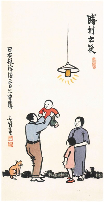 豐子愷的漫畫概括洗練,以仁愛之心描繪童真天趣,充滿生活情趣,如《阿寶兩只腳,凳子四只腳》《瞻瞻底車(二)腳踏車》,也有對民族復興的歌頌和期望,如《歸來報明主 恢復舊神州》《勝利之夜》等。豐子愷的漫畫,成為一代代中國人心向美好、熱愛生活的心靈溫泉。