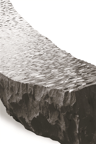 《雨》系列?!队辍废盗凶髌肥撬囆g家最重要的創作脈絡。如果《蹺蹺板》系列作品談的是人與人之間的關系,那么雨系列作品談的便是物與物之間的關系。用堅硬的花崗巖去模仿柔軟的水滴這是一件非常危險的事情。因為在當今流行的藝術創作方法中,用一種材料去模仿另外一種材料是常見的,也更容易獲得普遍的認同。而在雕塑藝術作品的創作中,這種方法體現得比繪畫或是影像作品更為明顯。說是一件危險的事情是對流行的警惕,因為這類作品永遠都要面臨解釋一件物為什么要模仿另一件物,一件物為什么不是另外一件物的終極問題。禪宗里面有一段高僧懷讓磨石為鏡以此點化馬道一的故事,講的便是石頭終究是石頭,不論如何打磨不成鏡子的故事,以此隱喻北宗禪打坐、念經、持戒無法立地成佛的道理。但藝術終究不是為了講道理,參禪悟道,我們又回到“技”與“藝”的探討中。在沈烈毅《雨》系列作品中,我們能感覺到藝術家近乎極致的執念,每一件作品都像修行般的苛刻,從選材到永無盡頭的打磨,讓作品的創作過程成為了作品最重要的一部分。區別于流行的雕塑創作,我們很難找到用有形物去模仿無形物,用永恒去模仿瞬間的作品案例。而沈烈毅用有形的石頭去模仿無形的雨,用永恒的石頭去模仿雨無形的瞬間便是作品的高明之處。在別人都談論物與物之間的區別的時候,藝術家賦予了兩種毫不相干的物體的聯系。