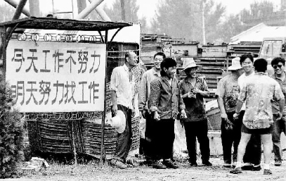 1998年,“今天工作不努力,明天努力找工作”成了北京市住總集團六公司轉崗分流職工的座右銘 安佑忠 攝