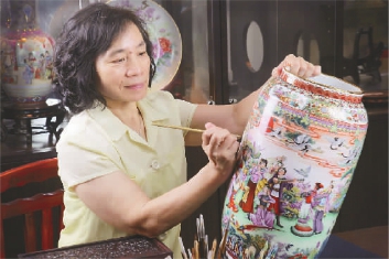近年來,廣彩變革變新,翟惠玲正是催生當代廣彩創作創新發展的代表人物之一?!皬V彩不能只學基本功,還要善于突破,否則一輩子就只能止步于填色了。 ”翟惠玲說。