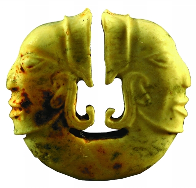 湖北石家河遺址出土的連體雙人頭像玉玦(方勤供圖)