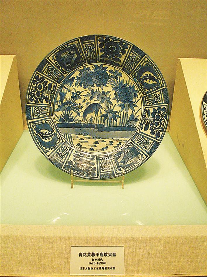 “有田燒”不僅結束了日本瓷器完全依賴從中國和朝鮮進口的時代,同時,也開創了日本瓷器出口的時代。當年“鍋島燒”特別愛模仿中國外銷瓷的“芙蓉手”(明晚期分格開光青花盤,因盤邊分格很像芙蓉花瓣而得此名),不僅樣式像中國青花,一些產品還題“大明成化年制”、“大明嘉靖年制”、“大明萬歷年制”的號款和中國的“富貴長春”等吉祥款,冒充中國瓷器出口歐洲。