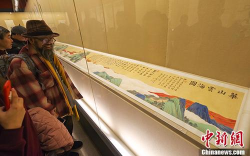 圖為觀眾參觀張大千名作《華山云海圖》 中新社記者 賈天勇 攝