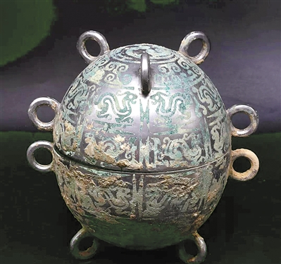 “器具裝飾精美絕倫,只消一眼,便可感受到耐人尋味的美感,仿佛聽到古人穿越歷史的足音?!币月摵峡脊抨狀I隊張春長見聞之廣博,見到其中那只奇特的鳥蓋瓠壺時,也禁不住驚嘆。它是一種動物和一種植物,即鳥和葫蘆的巧妙合體。鳥爪抓蛇,喙可開合。整壺輪廓像一只報曉雄雞,神采奕奕,恰似古天文星象中“瓠瓜星”亦即“天雞”之象。